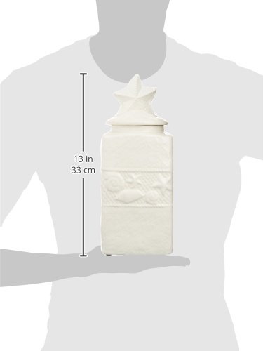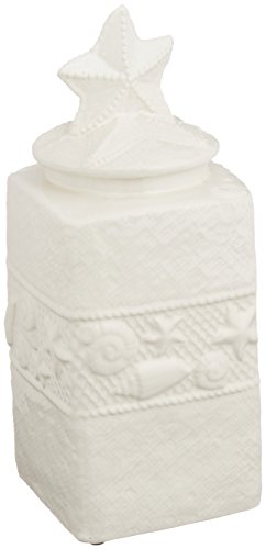 Urban Trends Collection 32656 2 Piece Large Coated White Ceramic Square Canister with Coastal Design Body & Star Design Lid44; 5.50 x 5.50 x 13.50 in.
