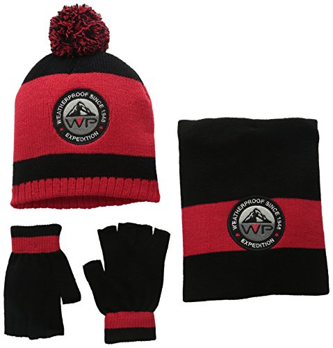 Weatherproof Big Boys' 3 Piece Set: Beanie, Fingerless Gloves and Neck Warmer