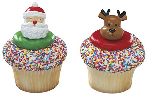 (Bakery Supplies)/Stationery Party Supplies/Party Supplies/DIRECT FROM USA/Jolly Santa Reindeer Christmas Cupcake Rings - 24 pc