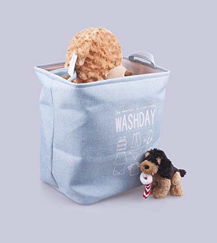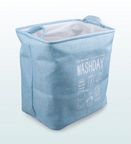 SANJET SJ-AM-LBBL Folding Laundry Basket Ramie Cotton Fabric with Waterproof EVA Coating Expert Household Storage Organizer Eco-Friendly Materials 13.8’’ x 9.8’’ x 15’’ Blue