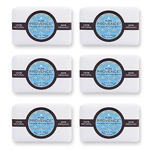 -. Title : Pure Provence Natural and Organic Triple Milled French Soap with Organic Shea Butter, Unscented Soaps, Extra-Gentle Full Size Bar, 100% Vegetable Based, Paraben Free - Pack of 6 x 5.3oz (150gr)