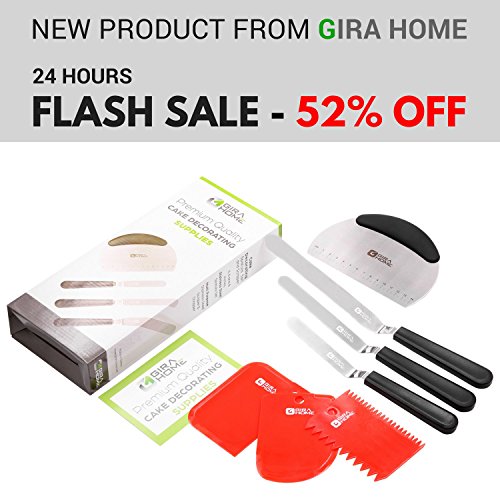 IMPRESSIVE 7 PIECE SET OF CAKE ICING TOOLS you will use again and again. We make these of very durable stainless steel and top grade plastics. These are perfect for mixing, baking, scooping and, of course, making stunning perfect iced cakes. Spatula handles are ergonomic for an easy grip that lets you work with even the most stiff frosting and other foods. Very handy for flipping or transferring food items. And don't worry, our plastic items won't scratch your non-stick cookware. Our spatulas, smoothers, and scrapers will endure warm temperatures. You can mix and stir directly in your pans. Everything in this set is stain and odor resistant. Dishwasher safe for ease and convenience. STOP USING KNIVES FORKS to decorate cakes! It's so much easier to get amazing frosting and fancy icing decorations when you have the proper tools. These stainless steel spatulas of 4, 6, and 8 inches. You also get a stainless steel scraper and plastic scrapers for spreading icing, smoothing, and scraping the bowl. 100% MONEY BACK GUARANTEE ensures this will be your best bet for a no-risk purchase. Many customers love this set so much they return to buy a second one to give to a friend. HURRY AND BUY NOW while we have a new shipment in stock. These make a much appreciated gift for friends, family, and co-workers - anyone who loves to make stunning cakes! 0 |
