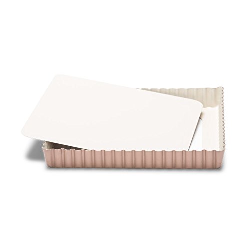 Patisse 03366 Ceramic Square Quiche Pan with Removable Bottom Non-Stick Surface, Cream/Copper