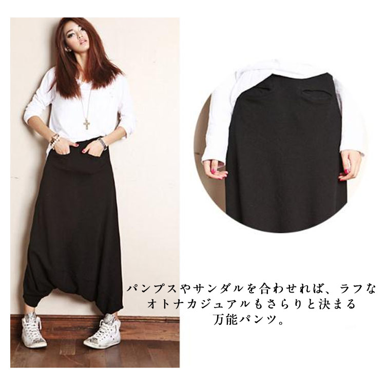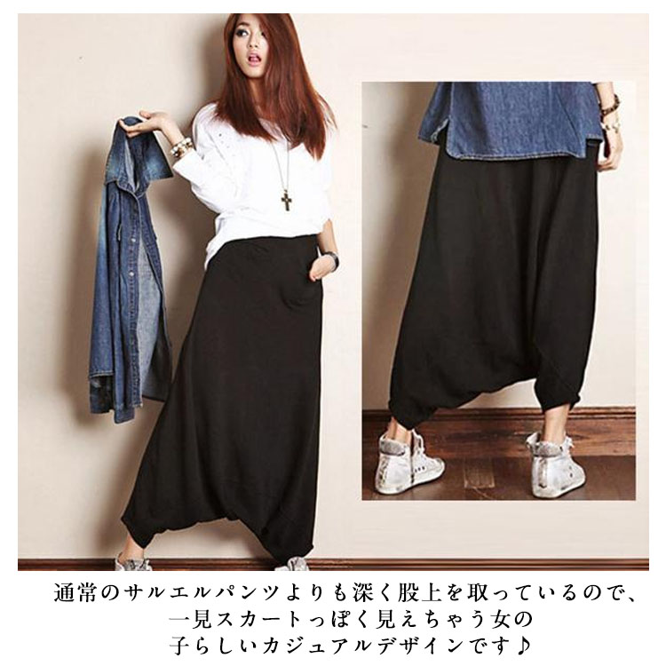 | 体型カバーでかっこよく穿けるサルエルパンツ。通常のサルエルパンツよりも深く股上を取っているので、一見スカートっぽく見えちゃう女の子らしいカジュアルデザインです♪柔らかで、着心地のいい素材ですので、ルームウェアにもお勧めです♪パンプスやサンダルを合わせれば、ラフなオトナカジュアルもさらりと決まる万能パンツ。 | |