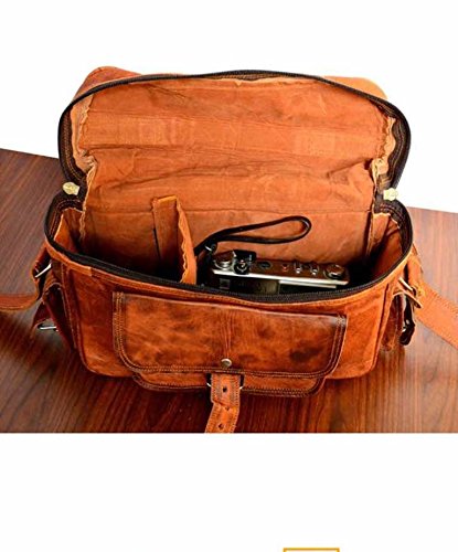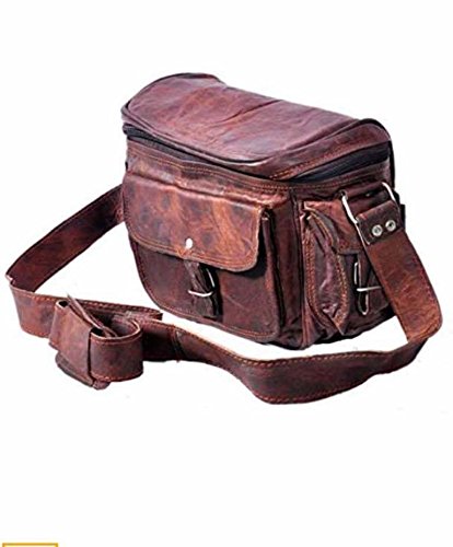 -. Feature : Very Spacious with Dimensions in inches: 11(Length), 9( height) 5 (Depth) / Perfect for Carrying Camera, DSLR, Lens, Charger etc to Adventure, Studio, College, etc / Naturally treated, strong but supple goat leather and sturdy soft padded lining on this inside. / This is perfect to use as a: camera bag for men leather, camera bag for women leather, leather bags, leather camera bag, leather crossbody bag