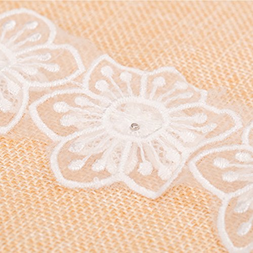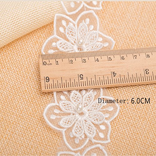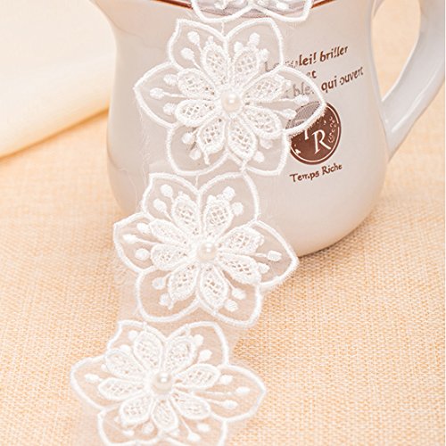 White Embroidered 2-Layer Flower Lace Trims with Pearl on Organza Applique for Wedding,Sewing DIY Craft.