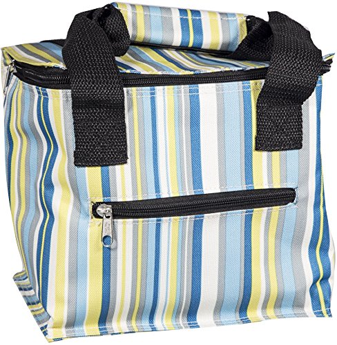 Palais Dinnerware Insulated Cooler Lunch Bag - With Zip Closure - Attractive Design, with Strap and Side Pocket (Blue Yellow Stripe)