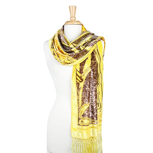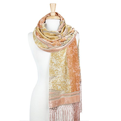 Lily and Bamboo Designed Velvet Touch Long Scarf with Tassel
