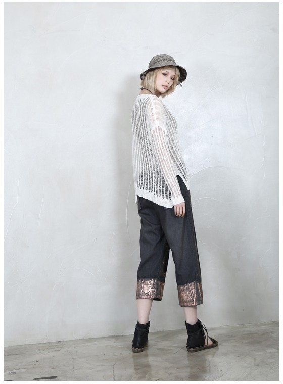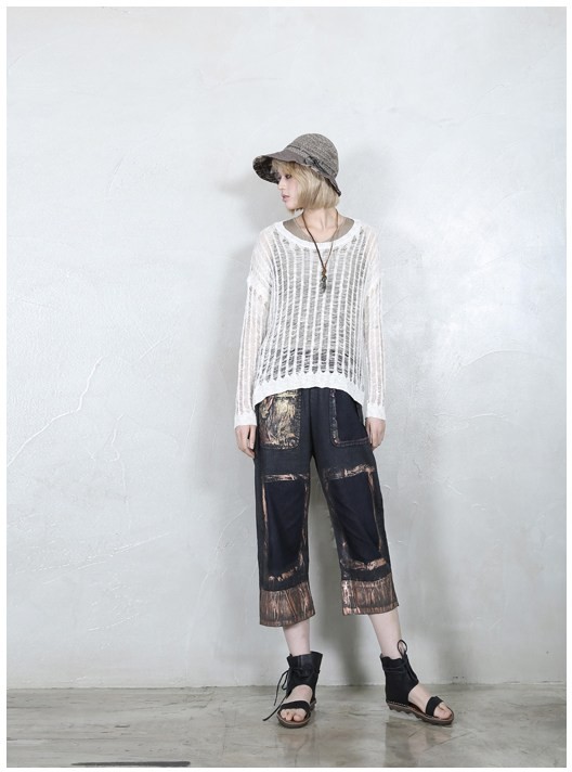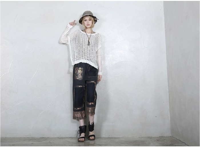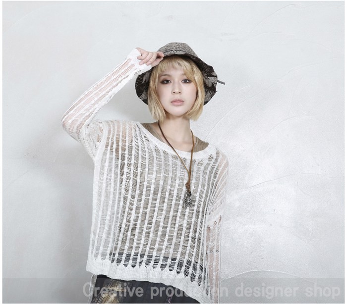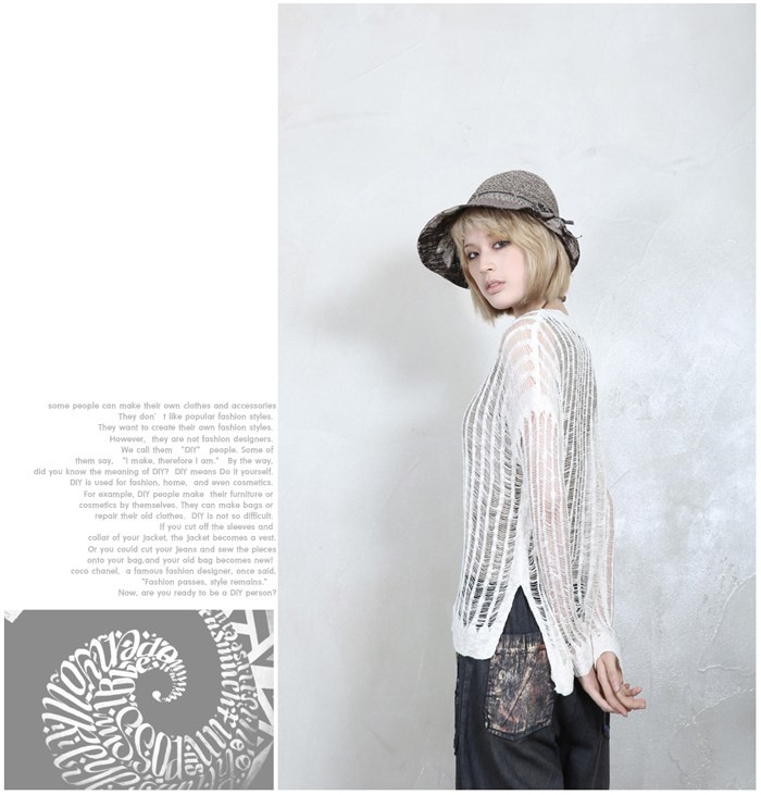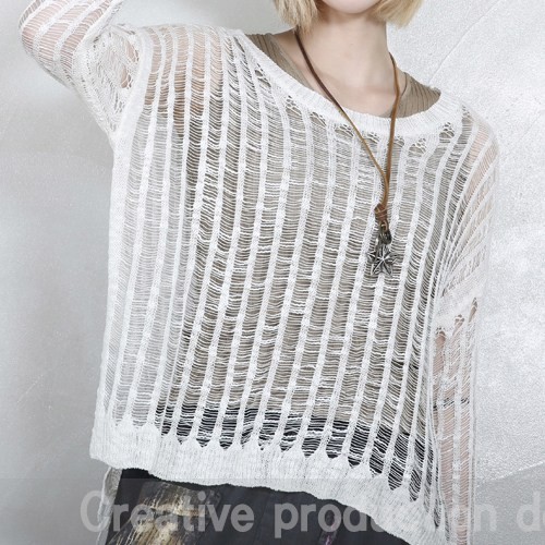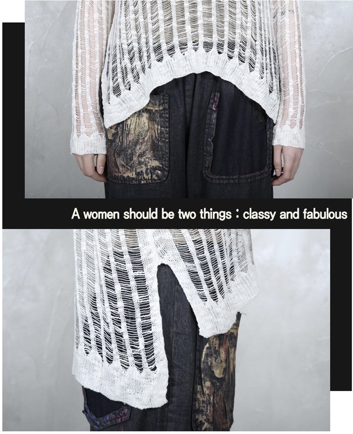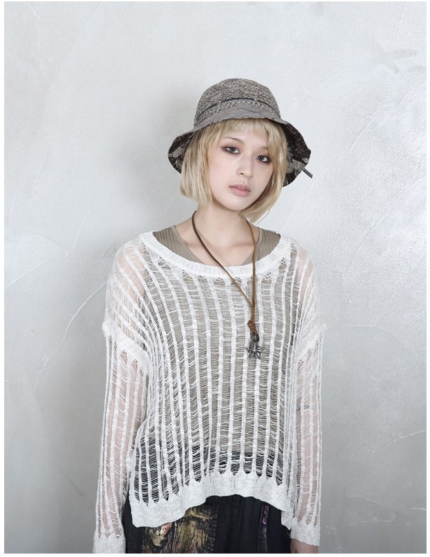 商品名:ニット レディース ダメージ 長袖 春 2018 モード系 個性的 40代 ファッション