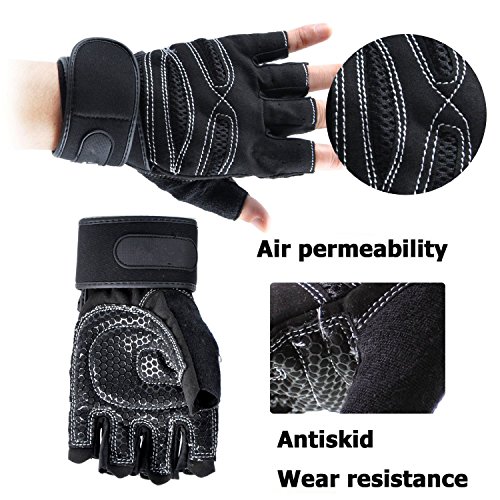 -. Binding : Misc. -. Brand : KT-Global -. Color : Black -. Department : mens -. EAN : 6881214217767 -. Feature : Package include: One Pair of Weightlifting Gym Training Gloves Medium / Great item for weightlifting, crossfit exercise, fitness, gym training / Double-layered palm and reinforced fingertips provide improved grip and greater durability; / Half finger length for a natural feel and increased contact with the lifting surface / Strategically placed molded foam protect the back of the hand -. MPN : 6716157 -. PartNumber : 6716157 -. ProductGroup : Apparel -. ProductTypeName : SPORTING_GOODS -. Size : Medium -. Title : 1 Pair Pro Non-slip Breathable Weight Lifting Half Finger Fingerless Gloves with Wrist Support Use for Gym Fitness Crossfit Training Black Medium