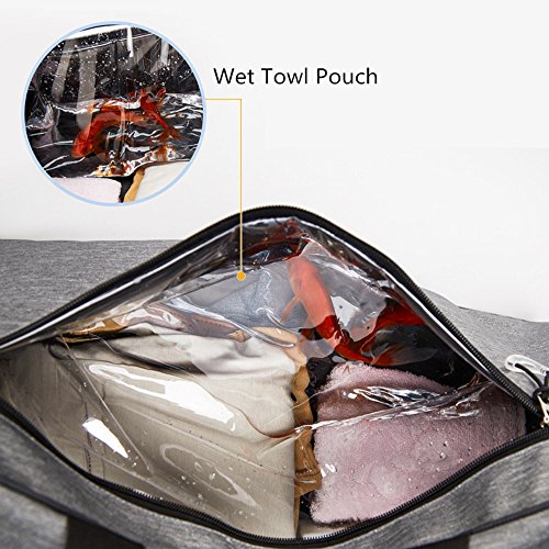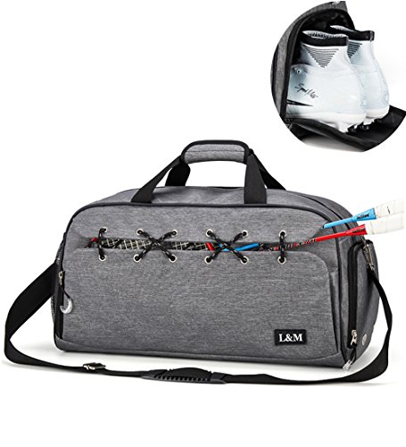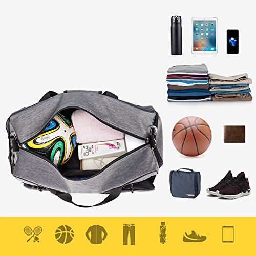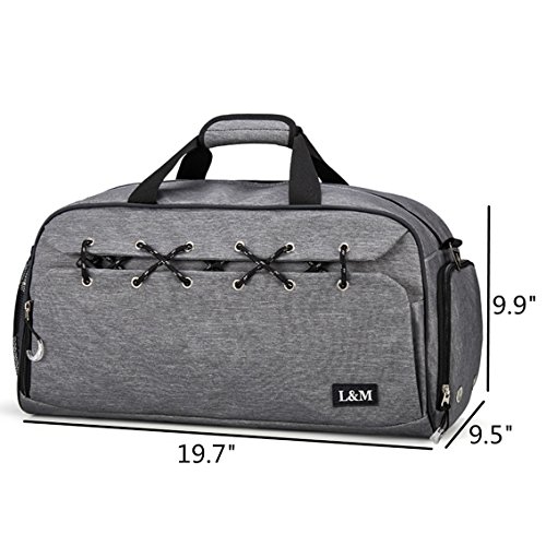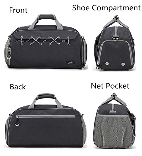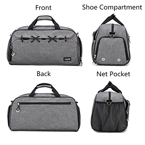FEATURES: 1. Specially designed Shoe Comparment ventilated to keep your shoes and dirty gear separated 2. Spacious sport duffel bag perfect for multiple-use, such as swimming, gym, day trips, camping, university, sports activities, vacation, travel, yoga, dancing etc 3. Dimension: 19.7 L x 9.5 W x 9.9 H Inch, fits most gym/club lockers, also fits fine in the overhead bins or under seat storage