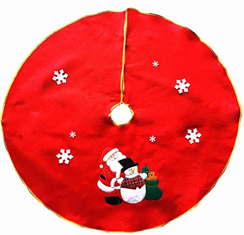 Christmas Tree Skirts Base Cover Red Santa Snowflake Snowman Pattern Xmas Decor 90CM