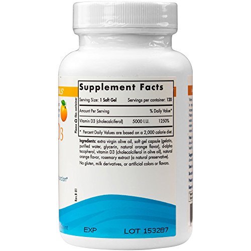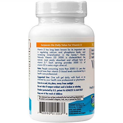 GET YOUR VITAMIN D3 NATURALLY - Nordic Naturals Vitamin D3 5000 offers a potent serving of vitamin D. The soft gels are made from cholecalciferol, the natural form of vitamin D, preferred for optimal absorption. Vitamin D3 5000 surpasses the daily recommendation for adults who do not receive adequate sun exposure. Support your calcium absorption and help promote healthy bones. Easy to take these vitamins with thier yummy nautral orange flavor.