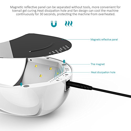 Studio : Abody Publisher : Abody Binding : Misc. Product Description This product is a professional nail polish dryer, providing you a salon level nursing for not only your finger nail, but also your toenail. Different from traditional UV nail lamp, besides UV nail glue, this heater machine can also be used for drying all other nail gel. Magnetic reflective panel can be separated without tools, more convenient for toenail gel curing. Heat dissipation hole and fan design can cool the machine continuously for 30 seconds, protecting the machine from overheated. Piano lacquer of surface makes it more fashionable. Specifications: Type: Nail Nursing Tool Model: SUNone Material: Plastics Color: White Plug Type: US Adapter Input: Alternating Current 100-240V 50/60Hz 1.0A Adapter Output: Direct Current 24V/1.5A Power: Can Switch Between 24/48W Item Size: Approx. 20.0 * 15.5 * 8.5cm / 7.9 * 6.1 * 3.3in (L * W * H) Item Weight: Approx. 424.0g / 15.0oz Adapter Size: Approx. 11.0 * 4.5 * 3.3cm / 4.3 * 1.8 * 1.3in (L * W * H) Adapter Weight: Approx. 159.0g / 5.6oz Notice: 1. Please read the user manual carefully before use. 2. To keep a long lifetime, please do not keep the LEDs turned on for more than 600 seconds. Package List: 1 * SUNone Nail Lamp 1 * Adapter 1 * US Plug 1 * User Manual 0