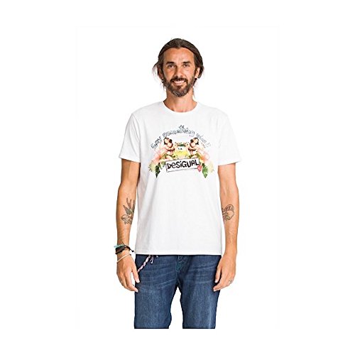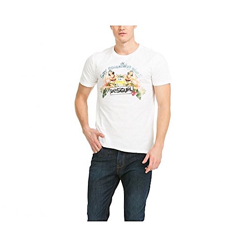 -. Title : Desigual Herren Men T-Shirt weiß white kurzarm *** ROCK *** 51T14H1 Baumwolle