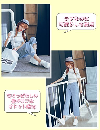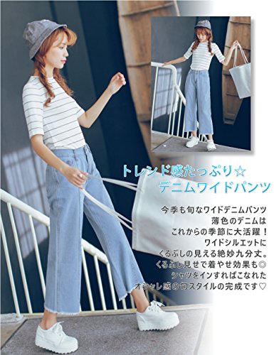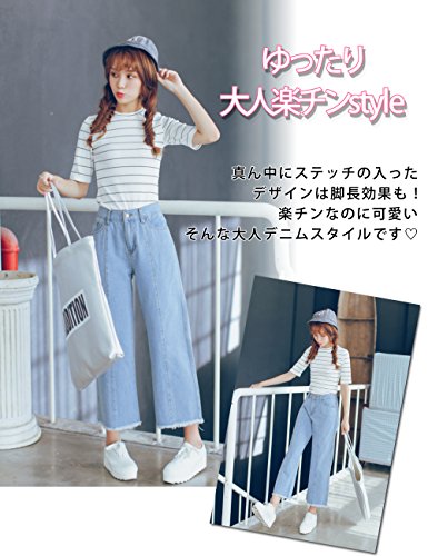 -. Title : (コタロン)COTARON レディース ガウチョ デニム パンツ ワイドパンツ 切りっぱなし 九分丈 ゆったり スカンツ 大きめ