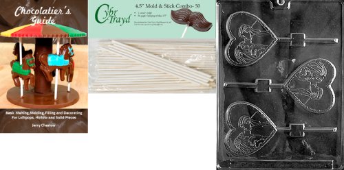 Cybrtrayd 'Bride and Groom Heart Lolly' Wedding Chocolate Candy Mold with 50 4.5-Inch Lollipop Sticks and Chocolatier's Guide