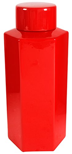 A&B Home 69718 Hexagonal Lidded Jar, Red, 14.2"