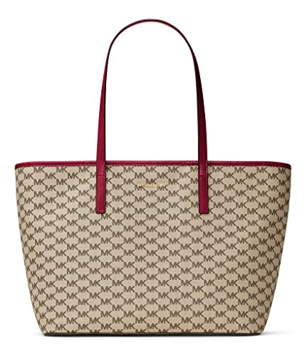-. Title : Michael Kors MICHAEL Emry Large Top Zip Tote- Natural / Cherry