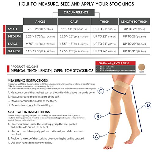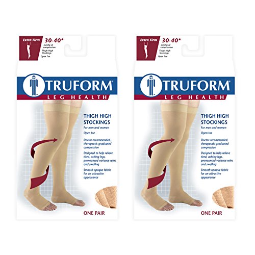 Truform Compression 30-40 Mmhg Thigh High Open Toe Dot Top Stockings Beige, Medium, 2 Count