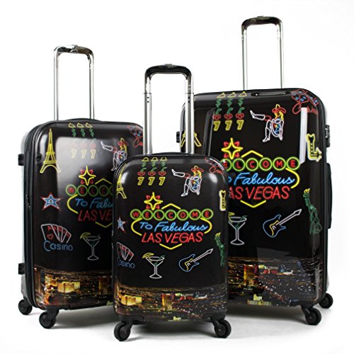 Studio : S E Publisher : S E Product Description A perfect getaway deserves a perfect suitcase for your stuff, and we just found the best and fitting item for you with this all new fabulous Las Vegas desin. A must have. Set includes: 3 Suitcases; 28 inch: 28 x 18.7 x 11 - 10.2 lb. 24 inch: 24 x 16.3 x 9.4 - 8.3 lb. 19 inch: 19 x 13.2 x 8.7 - 6.6 lb. Features: Checkpoint-Friendly, Locking, Spinner, Hardshell, Lightweight, Luggage and Durable | Materials: Polycarbonate 0