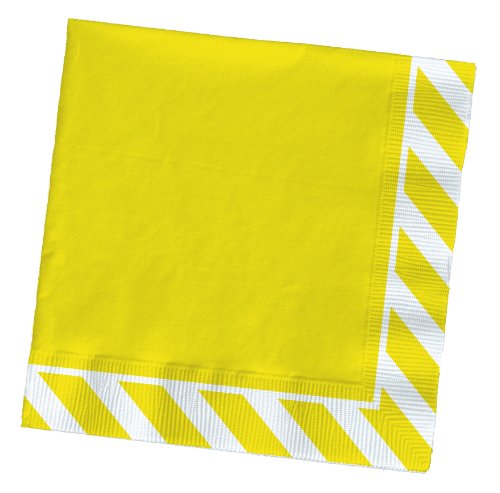 - Square beverage napkins with yellow stripe border design
