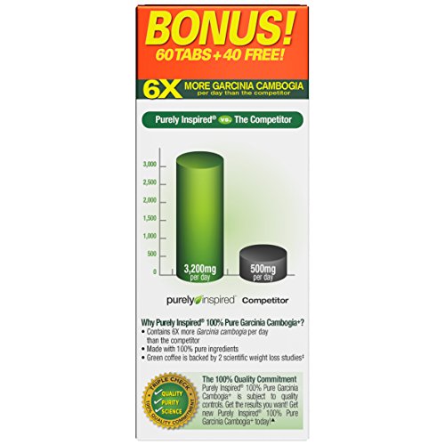 100% Pure Garcinia Cambogia from Purely Inspired is non-stimulating weight loss pill with 1600mg quality Garcinia Cambogia in gluten free, veggie tablets. Third party tested for purity and potency. Made in the USA 100% Satisfaction – Doctor recommended, proven effectiveness, 100% Money-Back Guarantee. Purely Inspired is the fastest growing diet supplement brand based on AC Nielson AOXC sales data Enhanced Formula – Unlike other Garcinia Cambogia products Purely Inspired 100% Garcinia Cambogia contains an added 200mg of premium green coffee backed by 2 scientific weight loss studies Scientifically Studied Weight Loss – Average weight loss with key ingredient (200mg green coffee extract) lost 10.95 lbs. in 60 days with a low-calorie diet and 3.7 lbs. in an 8-week study with a calorie-reduced diet and moderate exercise. Lose weight with our pure Garcinia Cambogia or your money back! Best Garcinia Cambogia Raw on the market.Feature