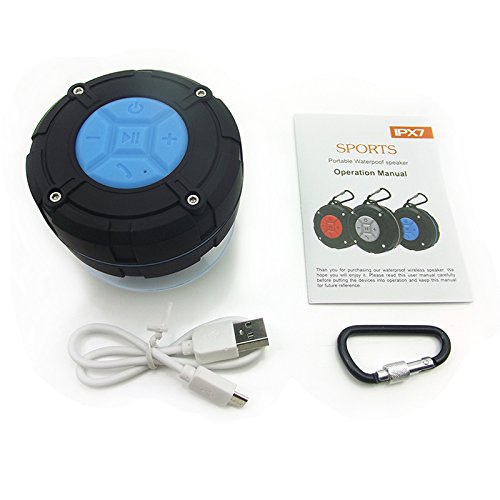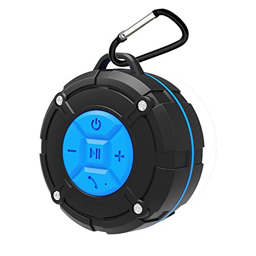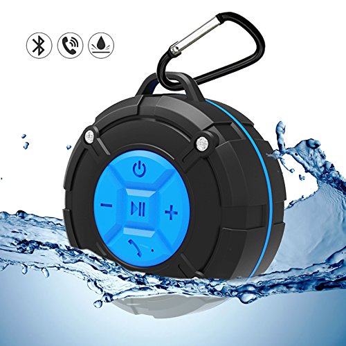 Moaron Portable Wireless Outdoor Speaker Mini IPX7 Waterproof Shower Speaker with 3W Output, Suction Cup, Carabiner Clip Hands-Free for iPhone, Samsung, LG, HTC, iPad, Laptop (Blue)