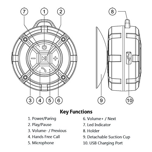 - Speaker with IPX7 Waterproof, Floating on Water and Never Worry about Dropping in Water.