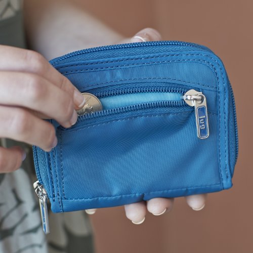 This mighty little wallet has a split personality with not one, but two main compartments. One side opens flat and stores bills, frequently used cards, and has a handy ID window. The other opens like an accordion, making the rest of your cards exceptionally easy to access. And for coins, we added a zip pouch on the back. All this storage in a pint-size frame make the Splits Compact Wallet the perfect companion to smaller Lug bags.Feature