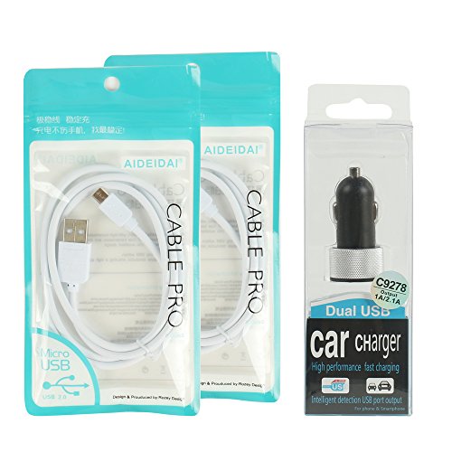 Mattwill Dual USB Car Charger 2.1a/1a USB Car Charger with 2pcs 1 Meter High Speed Micro Usb Cable , 2 Port Intelligent Output for Charging Android Devices Include Galaxy S5 Galaxy S6 Galaxy S6 Edge Galaxy Note 4 Sony Z1 Sony Z2 Sony Z3 Sony Z4 Htc One Us