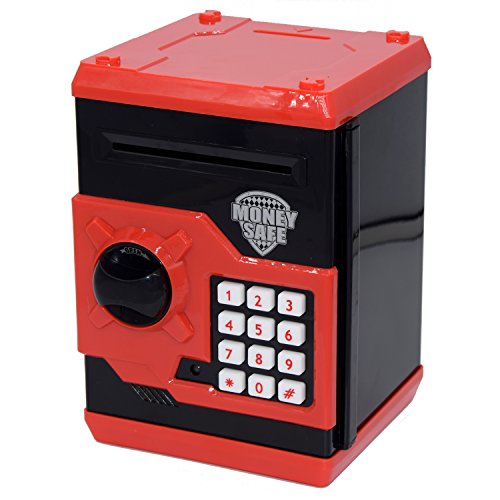 Code Electronic Piggy Banks Mini ATM Electronic Save Money Coin Bank Coin Box For Kids With Electronic Lock & Secret Code To Unlock with Password Great Gift Toy for Children Kids(Black & Red)