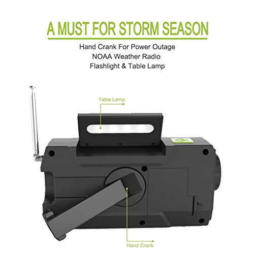 Hand Crank Self-charge for Outage: 2000mAh rechargeable battery provides up to 12 hours of light or 4-6 hours of radio time.