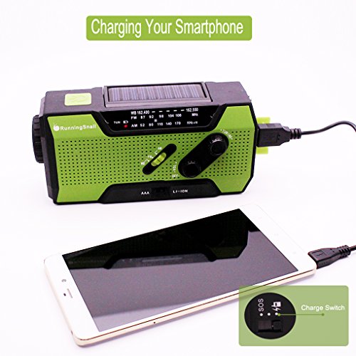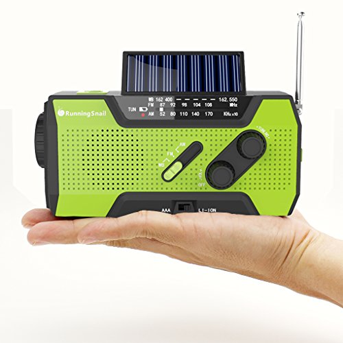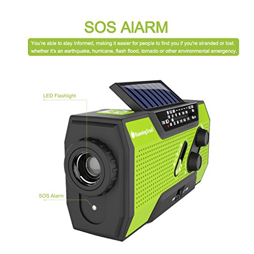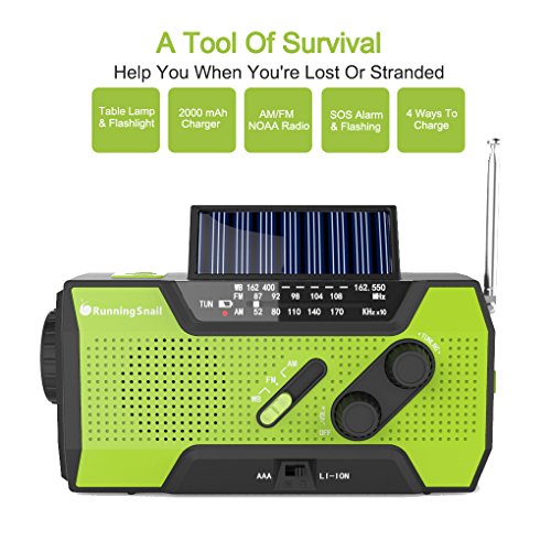 RunningSnail Solar Crank NOAA Weather Radio For Emergency, with 2000mAh Power Bank, Flashlight and Reading Lamp