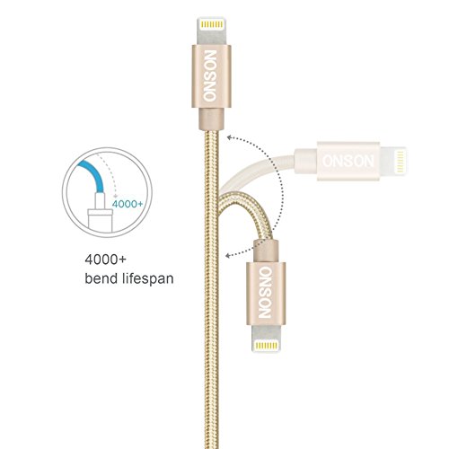 ONSON iPhone Cable,2Pack 10FT Nylon Braided Apple Lightning Cable USB Cord Charging Cable for iPhone 6/6S/6 Plus/6S Plus,5/5S/5C/SE,iPad 4 Mini Air (Gold)