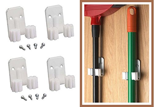 - Set Of 4 Broom Clips Mop Hanging Wall Hook
