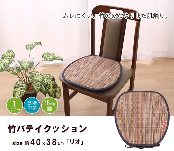 【商品名】クッション デニム 竹 竹クッション 竹シート 馬蹄 『リオ バテイ』 約40×38cm