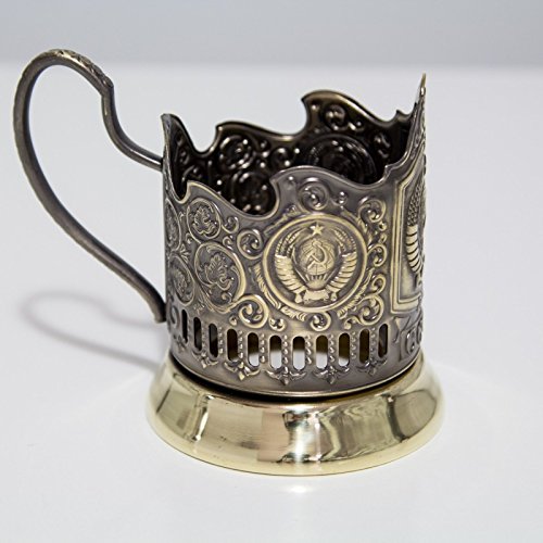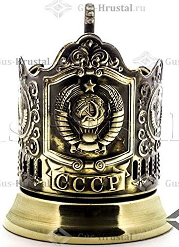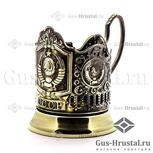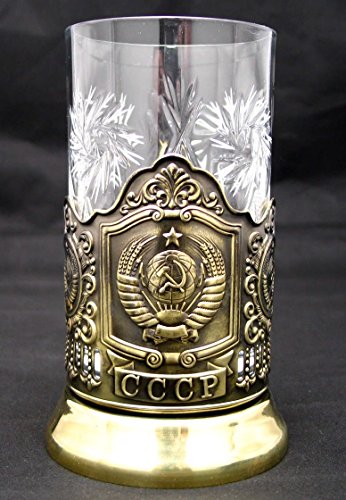 -. Title : Set of Russian Traditional Brass Metal Glass Holder Podstakannik "CCCP" with Cut Crystal Hot Tea Glass, 8.5 oz, suitable for Hot/Cold Liquids, USSR, Soviet