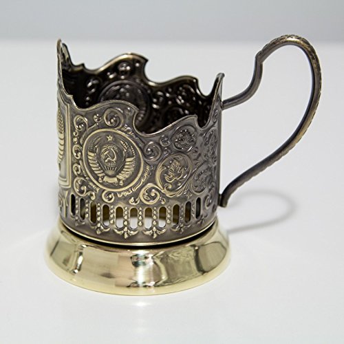 -. Feature : Set of Russian Glass Holder Podstakannik with a Crystal Glass for Hot tea / Authentic, Made in Russia by Kolchugino Metal Works / Glass: Cut Crystal 8.5 oz Holder: Brass / Glass Suitable for Hot or Cold Liquids