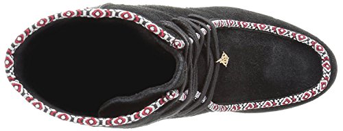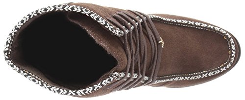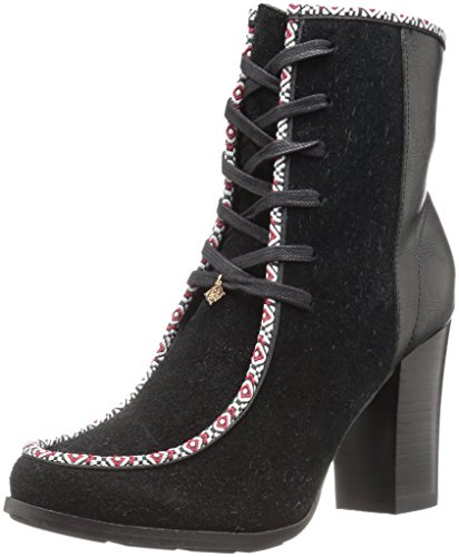 Product DescriptionWallaby lace up bootie on a block heel. with fun and colorful webbing and mix materials0