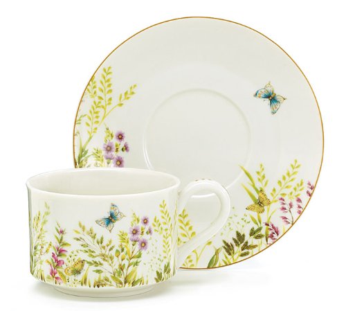 -. Feature : Design: Majestic Butterflies / Made of porcelain & hand painted. / Cup holds 10 ounces. / Saucer measures 6" in diameter. / Hand wash only/FDA approved.