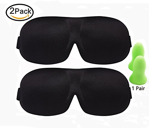 2 Pack 3D Sleep Mask Light Blocking Eye Mask for Sleep, Travel, Nap, Meditation sleep helper for Men, Women, with 1 Pair Earplug(Black)