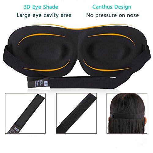 3D Contoured Shape Comfort Your Eyes: The eye space is wider and deeper than the traditional flat eye mask ,no pressure as on your eye balls, your face, won't rub against your eyelids