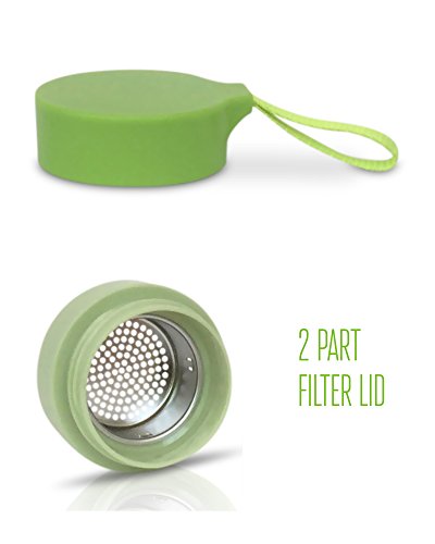 The glass bottles also have a silicone case for protection and a safe grip. Our lid, with a removable stainless steel filter, allows you to easily add ingredients such as fruit or tea to your drink, while also providing a strap to make the bottle easy to carry. HOT LIQUIDS WILL CAUSE THE BOTTLE TO BE HOT! ALLOW A FEW MINUTES FOR BOTTLE TO COOL DOWN!