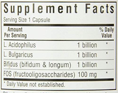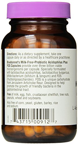 BlueBonnet Probiotic Acidophilus Plus FOS Vegetarian Capsules, 100 Count
