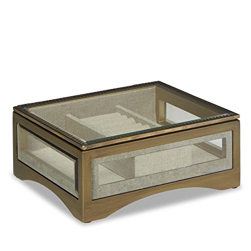 Jaclyn Smith Glass & Brushed Brass-Tone Jewelry Box