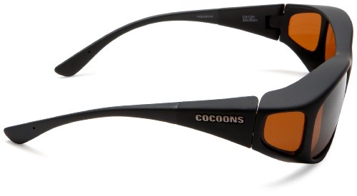 Designed to fit comfortably and securely over 99.5% of all prescription eyewear frames. Extra Large Fits over prescription frames measuring less than 5 1/2"w 2"h. Six sizes to choose from. 360° of Protection: It is important that a sunglass provides protection from all angles. Cocoons patented frame designs block damaging UV light and glare from all angles, completely isolating the eyes in a cocoon of filtered light. Each pair includes a custom designed protective neoprene case, large lens cloth and a limited lifetime frame warranty.Feature