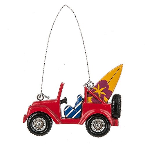 Midwest-CBK Red Jeep with Surf Board Christmas Ornament