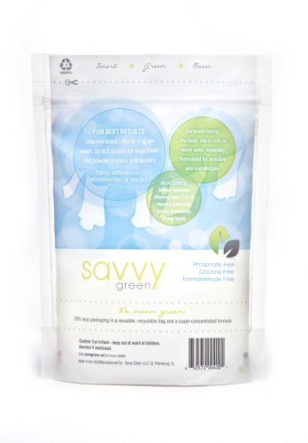 No need for additional Fabric Softener; residues will not remain that will stiffen fabrics; Also available in convenient single-use packs - search for: Savvy Green Laundry packs