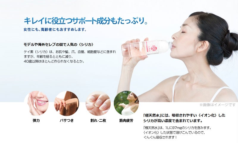 | 使用上のご注意 | ・開封後はすぐにお飲みください。 ・保存状況により、白い結晶が浮遊することがありますが、天然のミネラル成分ですので品質には問題ありません。 ・破損する恐れがありますので、容器のまま熱したり凍らせたりしないでください。 ・製品の品質が変わる恐れがありますので高温、多湿、直射日光の当たる場所はなるべく避けて保管してください。 ・空容器の散乱防止、リサイクルにご協力ください。 |